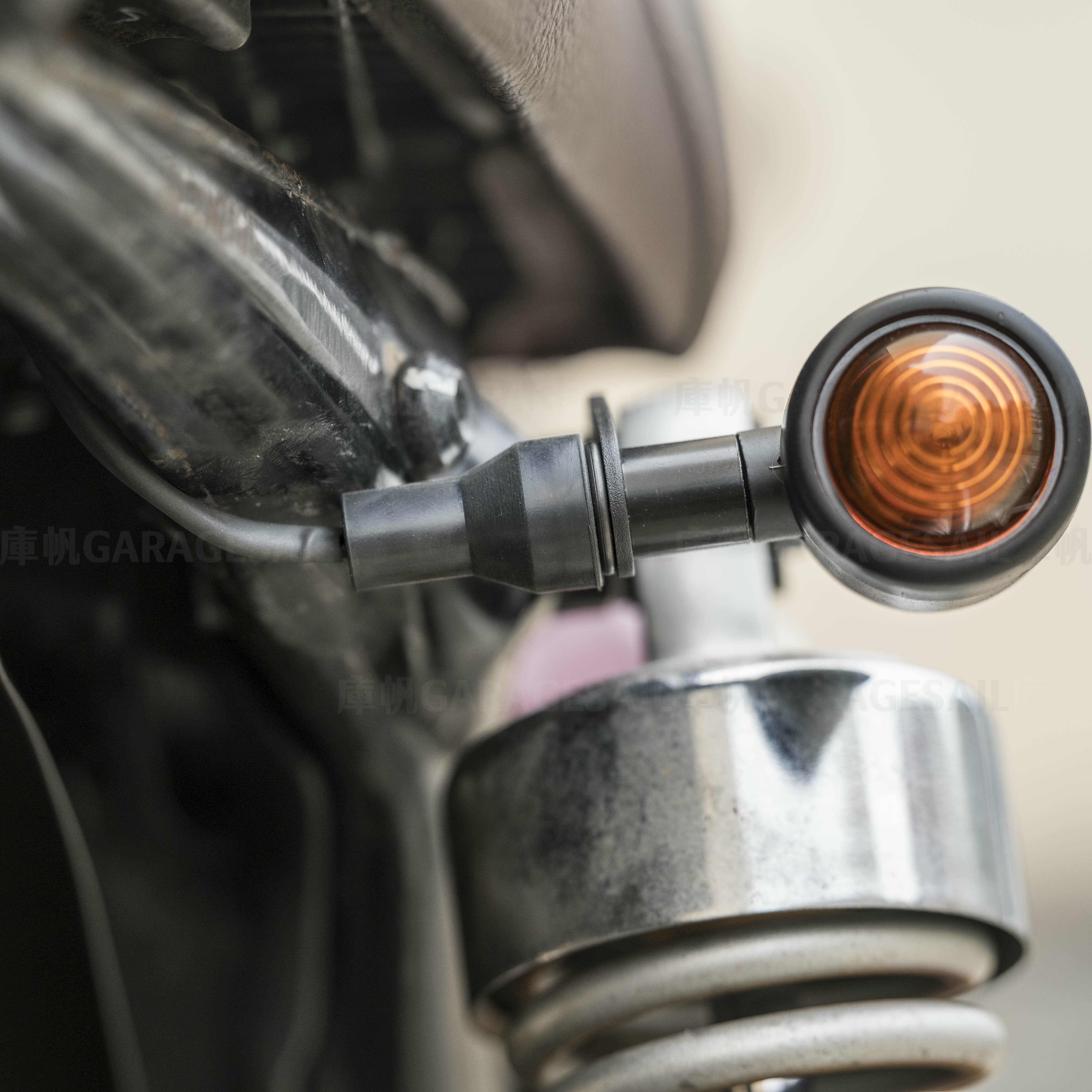 小圓子彈方向燈為台灣製造的經典復古風格燈具,外型小巧圓潤,適用於各式老車與改裝風格。庫帆版本升級防水設計,附白鐵螺母及防水套,並提供多款燈罩色可選。
